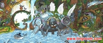 Her piece, titled “Back to Mother Nature," depicts2 an elaborate water-cleaning machine. Zhang worked with a team of artists at Google to animate3 her drawing.