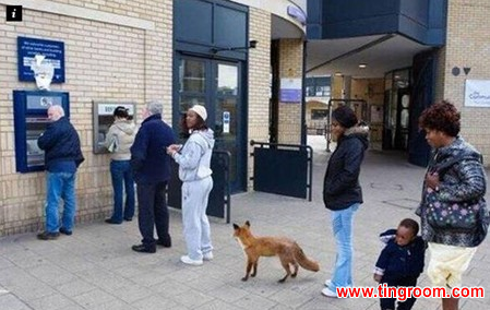 推特上有一张照片让人大跌眼镜:照片中有一只狐狸在取款机前排队取钱!