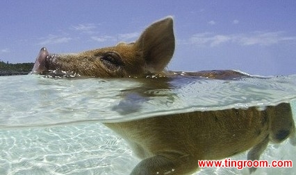 看到过往的游艇时,饥饿的小猪会急切地投入水中,游上几百英尺,只为免费吃上一顿。