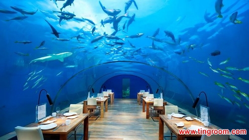 曾几何时,想要近距离观赏礁石与热带鱼的唯一途径就是潜水。后来多了些海边的水族馆。但在马尔代夫的港丽岛,游客们不用弄湿自己就可以在用餐的同时欣赏海底世界的奇景。