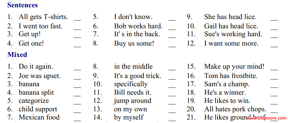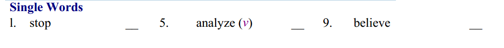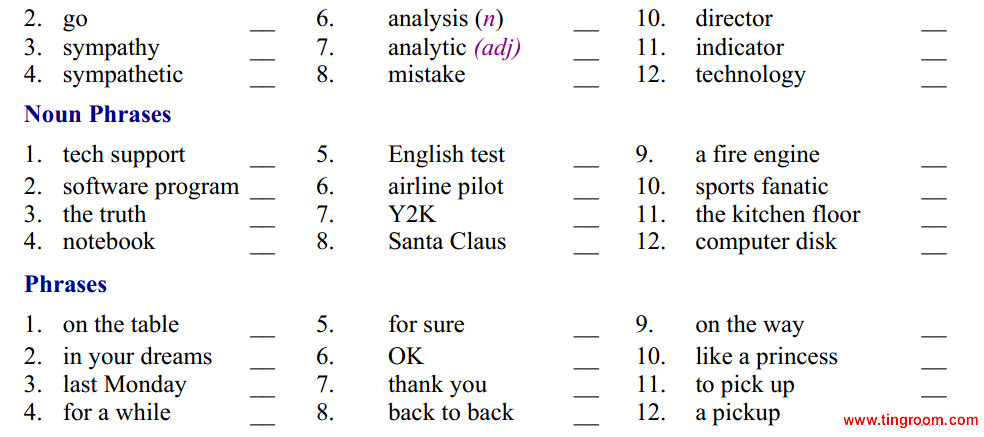 Put the following words into the proper category based on the syllable count intonation2. Write the pattern number in the space provided. Check Answer Key, beginning on p. 193.