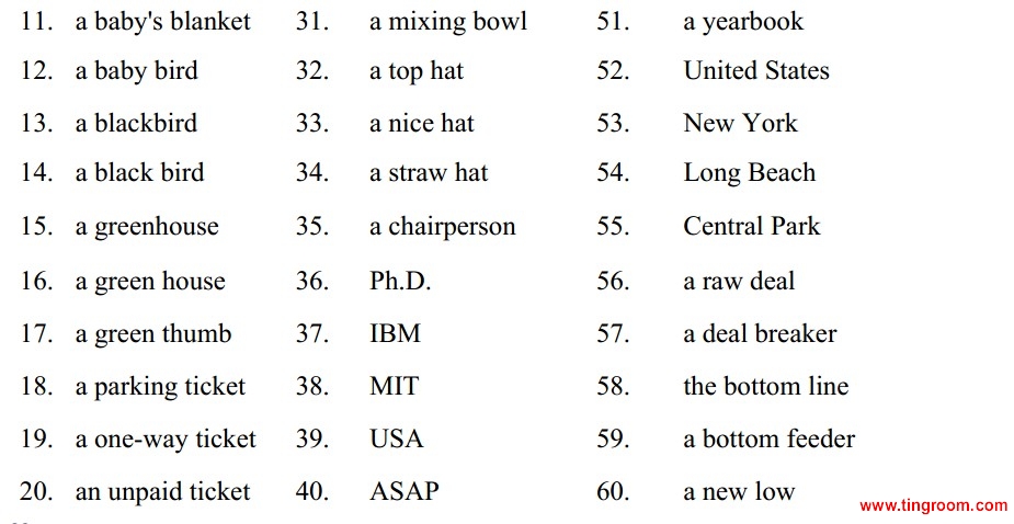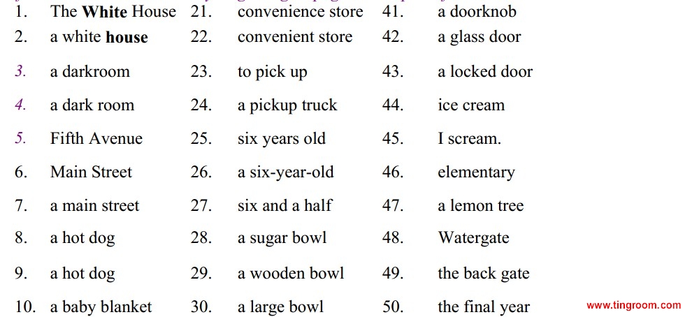 Exercise 1-35: Contrast of Compound Nouns CD 2 Track 3