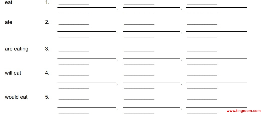 On the first of the numbered lines below, write a three-word sentence that you frequently use, such as "Computers organize information" or "Lawyers sign contract s" and put it through the 25 changes. This exercise will take you quite a bit of time and it will force you to rethink your perceptions of word sounds as related to spelling. It helps to use a plural2 noun that ends in a [z] sound (boyz, dogz) rather than an [s] sound (hats, books). Also, your sentence wi ll flow better if your verb begins with a vowel3 sound (earns, owes, offers). When you have finished filling in all the upper lines of this exercise with your new sentence, use the guidelines from Ex. 1-38 for the phonetic transcription. Remember, don't rely on spelling. Turn off the CD.