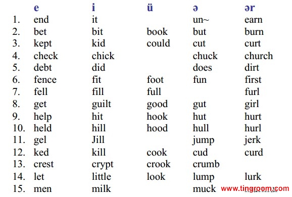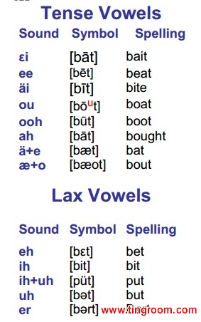 The lax vowels are produced in the throat and are actually quite similar to each other. Let's practice some lax vowels. See also Chapter 11 to contrastwith tense vowels. Remember to double the vowel when the word ends in a voiced consonant2.