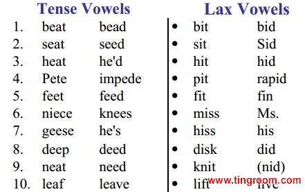 Read each column down. Next, contrast the singleand double tense vowels1 with each other; and the single and double lax vowels with each other. Finally read all four across.