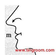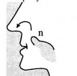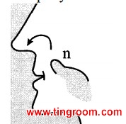 [n] is in a position similar to [t],but it can't be at all tense. It has to be completely relaxed, filling the whole mouth, touching2 the insides of all the teeth, leaving no room for the air to escape, except by the nose.