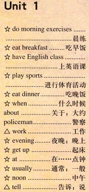 小学五年级英语(人教新课标版)下册 Unit 1 This is My Day - Wor