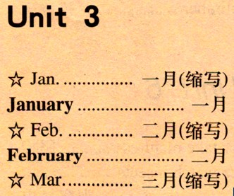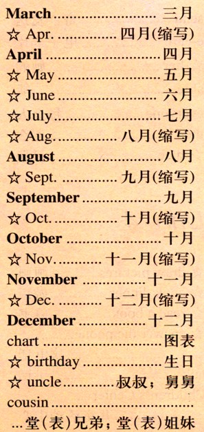 小学五年级英语(人教新课标版)下册 Unit 3 My Birthday - Words