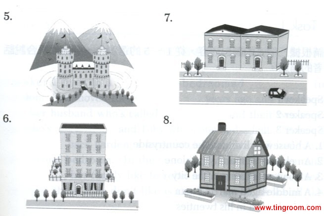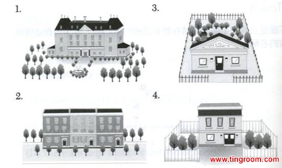 下面有一些英国住宅的名称和图片,请将图片名称配对,在每个名称前面填入正确的图片号码。