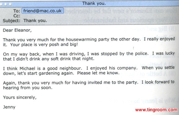 下面的电子邮件是在派对结束之后传送的, 里面有三个错误,请再听一次对话,将错误更正。