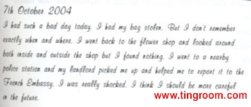 下面是Biggi 的日记,里面有四个错误,请再听一次对话,将错觉误更正。