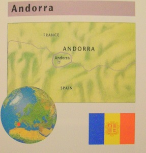 Andorra is one of the smallest countries in Europe. It is high up in the Pyrenees. If you look at the map of Europe, you can see that it lies exactly between France and Spain. It is a very mountainous area that has spectacular views. Though it is snow-covered for six months of the year, summers are warm and dry. Its capital is Andorra la Vella. Its area is about 174 square miles, and its population is close to 80 thousand. Though Catalan is the official language, there are many French and Spanish speakers as well. The river Valira splits into two and flows south, traveling through valleys and gorges1. Several things make Andorra very famous. First, it is a tourist destination. About 12 million tourists go there every year. Wow! That's a huge amount of income and traffic for a relatively2 small place. Most of the tourists go to ski. A lot of mountain climbing takes place all around, especially on the highest peak which is called Coma3 Pedrosa at just under 10 thousand feet. Its a healthy place to live! Infact, secondly4, it is the country that has the highest life expectancy5: 85 years.