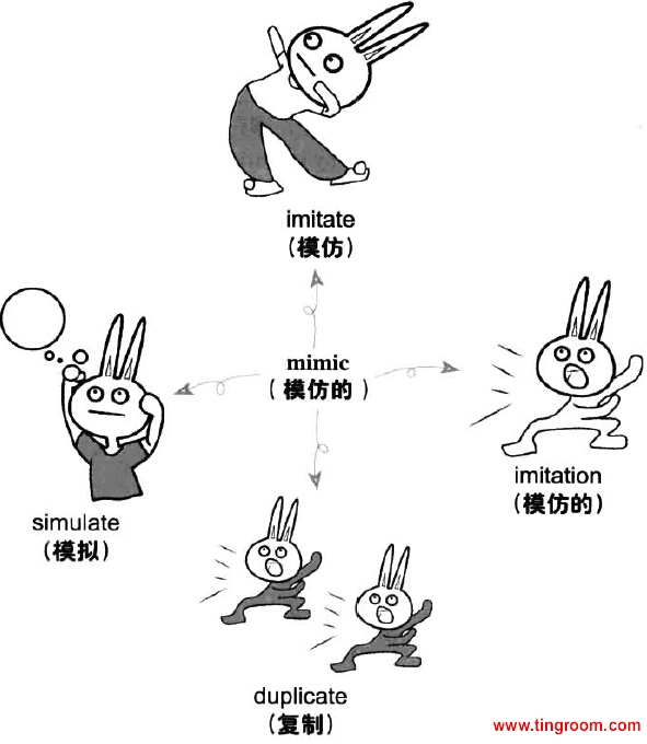 imitate vt. 模仿,仿效,仿制,仿造 v.模仿