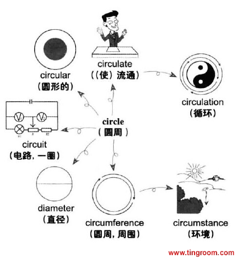 circle n.圆周,圆形物,派系,循环 v. 围,环绕,盘旋