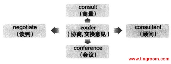 confer vt. 授予(称号、学位等),赠与,把……赠与,协议 vi. 协商,交换意见