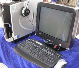 然后根据自己的预算决定是攒一台电脑还是买一台品牌机(factory model)。不管是攒一台机器还是买品牌机,都得知道这台电脑的中央处理器(CPU)是哪家公司生产的,硬盘(hard disc)的容量(capacity)有多大,转速(RPM)快慢,频率(frequency)怎么样,主板(mainboard/motherboard)的选择是什么,声卡(sound card)和显卡(video card)是什么品牌。光驱(CD-ROM player)多大,显示器(screen/monitor)是什么质地,尺寸大小如何等等。