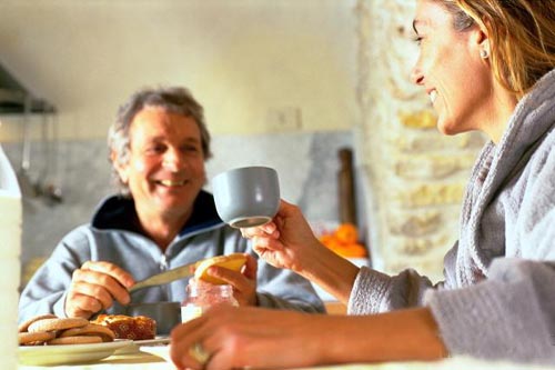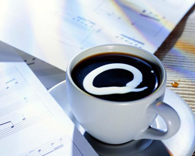 先来一杯早上咖啡,好让大脑运作起来再说。在今天的对话中,会出现几个跟咖啡有关的词,我们先在这里说一下,给大家提个醒,他们是coffee,caffe,还有café。coffee是咖啡的英文,但是这个单词就是单指“咖啡”。比如说,---May I help you? ---I'd like a cup of coffee. ---您要点什么吗?---我要来杯咖啡。