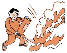 Jack: First, you have to pull the clip. Then you start spraying all over the fire.