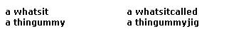 All of the following words can be used to represent a noun when we do not know the real word or when we can't remember it.