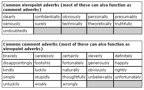Comment and viewpoint adverbs - position (表达评论及观点的副词 - 句中的位置)