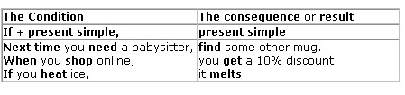 The zero conditional is made up of the condition (the 'if/when/next time' part of the sentence) and the consequence or the result.