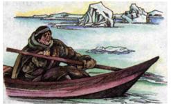 Time went by, but Sedna never became used to the bird man. She felt very unhappy in the relationship and spent her days crying and calling her father's name. In the meantime5 her father began to feel guilty6 about forcing his daughter to marry against her will. So as soon as her cries reached her father, he decided7 to go in search of her. He packed his canoe and paddled8 for days, ignoring strong tides and freezing water till he came to the island. When he arrived, the bird man was away hunting and Sedna was standing9 on the shore. He asked his daughter for forgiveness and helped her into the canoe. They set off for home.