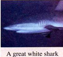 The seas around Australia contain over 160 different kinds of shark, which vary3 in size from just 20 centimetres to over 14 metres. However, although they look dangerous because of their wide mouths and sharp teeth, all but two or three kinds are harmless4 to humans.