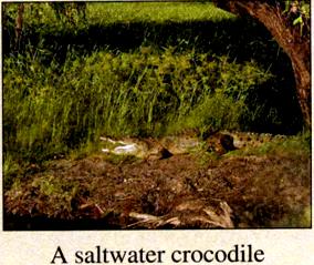 There is one other dangerous animal in Australia worth mentioning, and that is the crocodile. Although two types of crocodile live in Australia, only the saltwater crocodile has been known to kill humans. This crocodile moves very quickly when it sees something it considers to be food, and from time to time a crocodile has snatched5 someone before he or she is even aware that the crocodile is there.