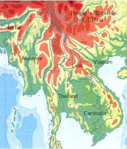 Several months before our trip, Wang Wei and I went to the library. We found a large atlas5 with good maps that showed details of world geography. From the atlas we could see that the Mekong River begins in a glacier6 on a Tibetan7 mountain. At first the river is small and the water is clear and cold. Then it begins to move quickly. It becomes rapids as it passes through deep valleys, travelling across western Yunnan Province. Sometimes the river becomes a water fall and enters wide valleys. We were both surprised to learn that half of the fiver is in China. After it leaves China and high altitude, the Mekong becomes wide, brown and warm. As it enters Southeast Asia, its pace slows. It makes wide bends or meanders8 through low valleys to the plains where rice grows. At last, the fiver delta9 enters the South China Sea.