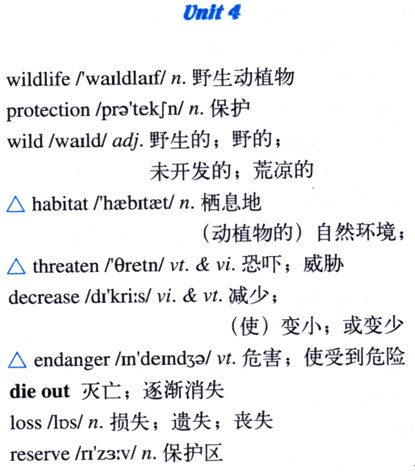 普通高中课程标准实验教科书 英语必修2 Unit 4 Wildlife protect