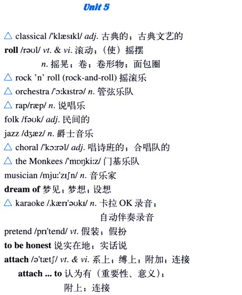 普通高中课程标准实验教科书 英语必修2 Unit 5 Music-words