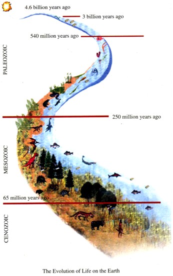 Many millions of years later, the first extremely small plants began to appear on the surface of the water. They multiplied and filled the oceans and seas with oxygen, which encouraged the later development of early shellfish and all sorts of fish. Next, green plants began to grow on land. They were followed in time by land animals. Some were insects. Others, called amphibians2, were able to live on land as well as in the water. Later when the plants grew into forests, reptiles3 appeared for the first time. They produced young enerally by laying eggs. After that, some huge animals, called dinosaurs4, developed. They laid eggs too and existed on the earth for more than 140 million years. However,