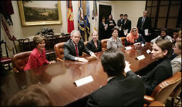 THE PRESIDENT: Good morning. Last weekend, the people of Iraq formed a national unity1 government. This is an important milestone2 on the road to democracy in Iraq, and it marks the beginning of a new chapter in America's involvement. Last Sunday, I talked to the President, Prime Minister-designate, and Speaker of the new government. And this week, I sent Secretary of State Rice and Secretary of Defense3 Rumsfeld to Baghdad to meet face-to-face with the new Iraqi leadership. We've all been impressed by the Iraqi leaders' commitment to maintain the unity of their country and effectively represent the Iraqi people.