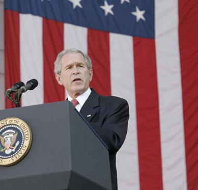 THE PRESIDENT: Good morning. This weekend we commemorate1 Veterans Day, a day when America honors every man and woman who has worn the uniform of our military. In Veterans Day celebrations across our Nation, we remember those who have served in previous wars, those who are serving today, and those who did not live to become veterans. Especially in a time of war, we see in our veterans an example of people who stepped forward to serve a cause larger than themselves. This weekend, I ask you to take a moment to thank our veterans for their service, and express your appreciation2 for the sacrifices they have made to preserve our freedom and way of life.