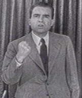 One other thing I probably should tell you, because if I don't they'll probably be saying this about me, too. We did get something, a gift, after the election. A man down in Texas heard Pat on the radio mention the fact that our two youngsters would like to have a dog. And believe it or not, the day before we left on this campaign trip we got a message from Union Station in Baltimore, saying they had a package for us. We went down to get it. You know what it was? It was a little cocker spaniel dog in a crate29 that he'd sent all the way from Texas, black and white, spotted30. And our little girl Tricia, the six year old, named it "Checkers." And you know, the kids, like all kids, love the dog, and I just want to say this, right now, that regardless of what they say about it, we're gonna keep it.