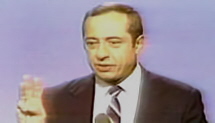 We give money to Latin American governments that murder nuns55, and then we lie about it. We have been less than zealous56 in support of our only real friend -- it seems to me, in the Middle East -- the one democracy there, our flesh and blood ally, the state of Israel. Our -- Our policy -- Our foreign policy drifts with no real direction, other than an hysterical57 commitment to an arms race that leads nowhere -- if we're lucky. And if we're not, it could lead us into bankruptcy58 or war.