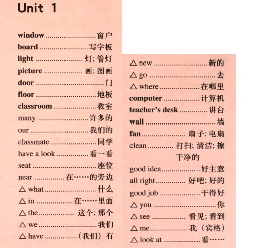 小学四年级英语(人教新课标版)上册 Unit 1 Classroom - Words