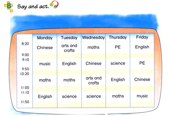小学三年级英语(深圳朗文版)下册 Unit 4 Our lessons-B