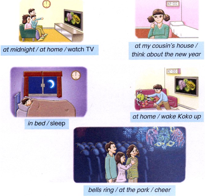 It's New Year's Day. Pat1, Tim, Koko and their friends are talking. Read, listen and act.
