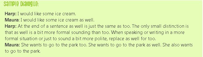 This question is about “as well”. Is it exactly the same as “too”? Can it also be used in another way? Check out this episode to find out! And check out our Lipservice as well.