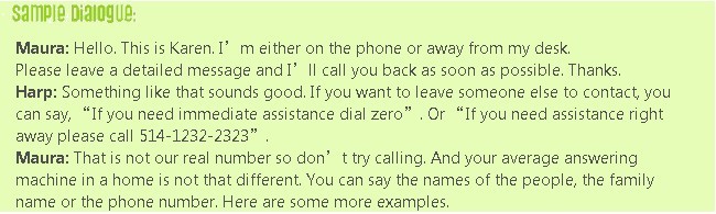 How do I leave a greeting in English on my answering machine at work? There are standard messages and there are more special, funny ones. Listen to this podcast to hear professional messages and Harp1 and Maura sing!