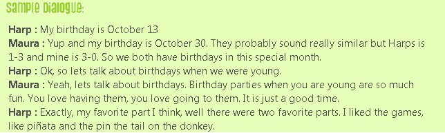 In honour of Harp1 and Maura’s birthdays we decided2 to do a podcast about birthdays! In this episode, we talk about birthday parties (mostly for kids and teenagers) and what activities are a usually part of them. We also talk about the special birthdays in a person’s life, like the big 3-0!