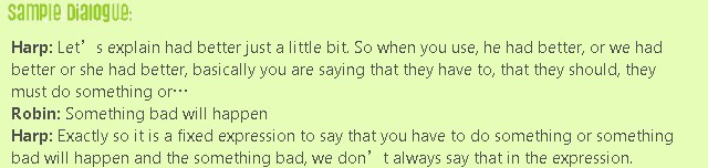 You had1 better listen to this episode2! Did3 you understand this first sentence4? If you didn’t, check out this episode and hear us explain5 “had better” for you. We will also give you lots of examples of how to use it.