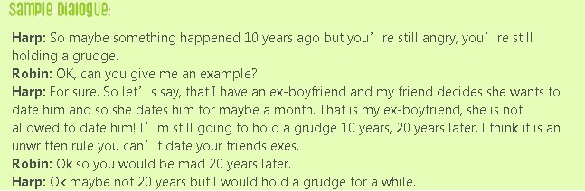 Are you holding a grudge1 against someone? Have you been mad at someone for a week? A year? 10 years? We hope not! To hold a grudge is not a good thing and means that you are mad for a long time. It is much nicer to be happy! Listen to this fun episode to learn more about holding a grudge and having hard feelings.