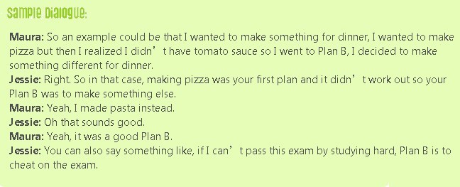 Sometimes we have a plan to do something and it does not work. In that case we need to plan something different, and that is when we use this expression1. If you want to listen to this podcast, but your internet is not working, you will have to go to Plan B! What is your Plan B?