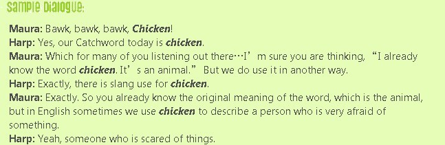 Are you a chicken? In this episode1 we look at a familiar word but show you how it can be used in another way. Most of you probably know that a chicken is a kind of bird. And you can also probably imagine a chicken dinner. There is another funny way that we use chicken in English. Check it out here…or are you a chicken?