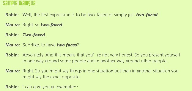 In this episode1 we talk about a person2 that you do not want to be friends with. We describe3 a person who is two-faced! We also give examples of how a person talks behind another’s back and how someone4 backstabs another. If you ever5 find yourself6 in these situations7 you will know how to talk about it. From Culips to you, we hope8 you don’t have any people like this in your lives!