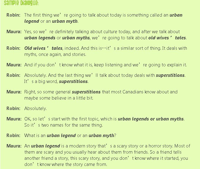 In this episode we are talking about interesting, funny, and strange beliefs in North American culture. Robin1 and Maura share a couple scary stories that they have known since they were kids. They also review popular old wives’ tales like, An apple a day keeps the doctor away. They also talk about some superstitions2 that some people still believe in today, including Robin! This is a great episode is you are interested in learning more about North American culture.