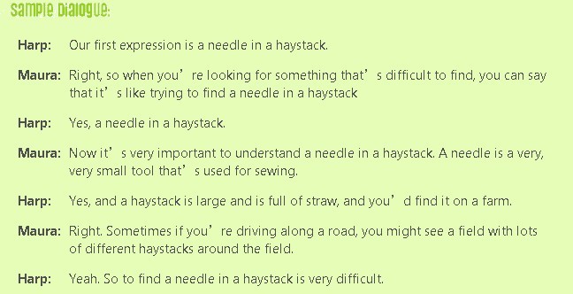At some time in our lives we all lose something! Hopefully you can easily find it again. Other times it is very difficult to find what you have lost. This episode1 is about expressions that we can use when we have to look for our lost item that is difficult to find. We might say that it is like looking for a needle in a haystack, or that we have to go on a treasure hunt, or that we searched inside out for it!