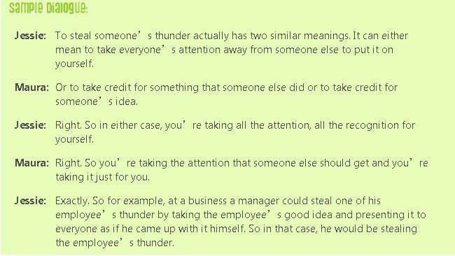 This episode is about people taking attention for themselves, and the expressions we can use to talk about them! A person might steal another person’s thunder by accident when they announce important news. Another person might give a great performance and steal the show. It is also important to give credit where credit is due if another person deserves recognition. Listen to this episode to learn more about these expressions.